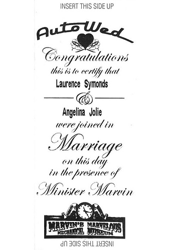 AutoWed is a novelty wedding machine offering a quick hitch, a couple of rings and a personalised certificate for just £1/$1. The whole wonderous thing is designed and built by Concept Shed specially for Marvin’s Marvellous Mechanical Museum in Detroit, USA.